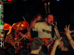 This death/thrash metal band from Denmark released their sixth album (To the Nines) last year, and we really liked what we heard (particularly a song with one of the most inspired titles of the year — “Cloaked in Shit”). But we were wondering what we’d hear at El C, because vocalist “Joller” Albrechtsen left the band in February. In his absence, HateSphere recruited a dude named Morten “Kruge” Madsen (from Danish band Mevadio) as a temporary replacement on this tour.