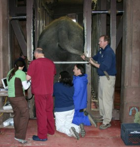 The two 20-minute procedures were carried out by zoo staff and a visiting veterinarian. Chai was first put in an “elephant restraint device,” which involves chains placed around the ankles to keep her from moving side to side, Hawkes said.