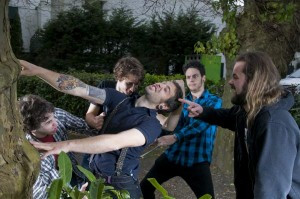 If you can wrap your mind around an amalgamation of those sounds, The First Fall is something you might want to check out. It’s an audio onslaught of mathcore tempo jaunts, insanely furious vocals, and a distorted, thud-heavy low end that sets up a harmonic vibration in your lower gut. In two words, it’s fucking cool. (more after the jump, including a song to stream . . .)