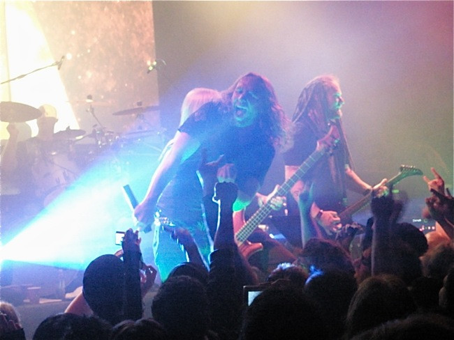 We first saw these guys more than three months ago when they were touring with Arch Enemy (see our review of that concert here) just in advance of their debut album release. We said little about them when we reviewed that show, because the power-metal style of music they play just isn’t something that appeals to us as much as the gnarlier music we tend to cover on this site.