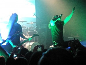 We’re not gonna say too much about this band’s performance here — because we devoted a whole post to them yesterday. In a nutshell, they kicked massive amounts of ass: A great stage presence; technically excellent playing; and one catchy, headbangable song after another. This band churns out modern melodic death metal that deserves a wider audience. (We do have some photos of the band’s performance that we didn’t put in yesterday’s post — so we’re putting those up at the end of this one.)