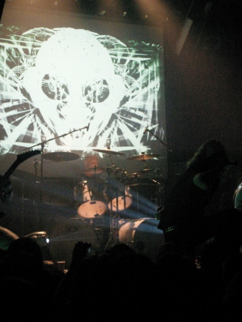 The multimedia show. On a big screen behind the band, the most fascinating images flashed forward as DT hammered out the hits! We’ve got photos of a few of them at the end of this post. The images, standing alone, would be worth seeing, but the way in which they were arranged to connect with the music was just fucking brilliant.