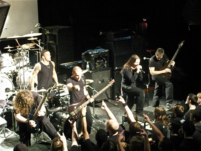 This Canadian band has always been a bit of a mixed bag for us. Their sound is a blend of melodic death metal and metalcore. There’s a satisfying degree of technicality in the instrumental work, and Travis Montgomery‘s riffs and solos (both on the recordings and live) are particularly impressive. And when Jon Howard belts out the harsh vocals, he’s got plenty of aggressive power.