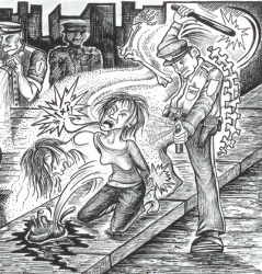 Okay, that makes sense now. She was 5’5″ and weighed only 120 – 130 pounds, but she was a slippery little minx. Hot and sweaty. The cops were probably sweaty, too. That sometimes happens if you’re around a naked woman.