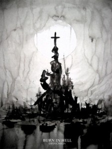 Okay, it’s no coincidence. Cam Strudwick, the artist and bassist for Burning Ghats is also the guitarist (and artist) for Burn in Hell. And Chad Jones, the vocalist for Burning Ghats, is the bass player for Burn in Hell. Talk about a game of musical chairs!