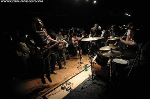 Capsule also has a new song up on its MySpace page (here) called “Whole Grounds”. It’s the song that brought us up short when we first started exploring Capsule’s music. It’s ridiculously heavy, with a slow, crushing rhythm, cacophonous guitar noise penetrating the weighty low end, and hardcore yells clamoring for attention.