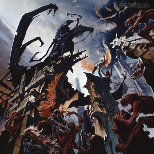 I like Dan Seagrave. Yes, some works of his do seem a little derivative of himself (Warbringer, for example) but overall I love the depth of field at wrk in his art, there are always new aspects and angles to be uncovered and appreciated. His work for Becoming The Archetype was exceptionally good in that regard.