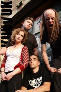 Kunvuk has made the first song from the new album, “Hypochondriac”, available for free download at this location. That’s the song I heard. It’s loaded with heavy, downtuned guitars, jabbing rhythms, machine-gun drumming, a variety of demented vocal styles, schizophrenic time signatures, and a nice, whining guitar solo. This is definitely outside the box, but the screeching vocals make fingernails on a chalkboard sound calming, and I’m still trying to get past them. See what you think:
