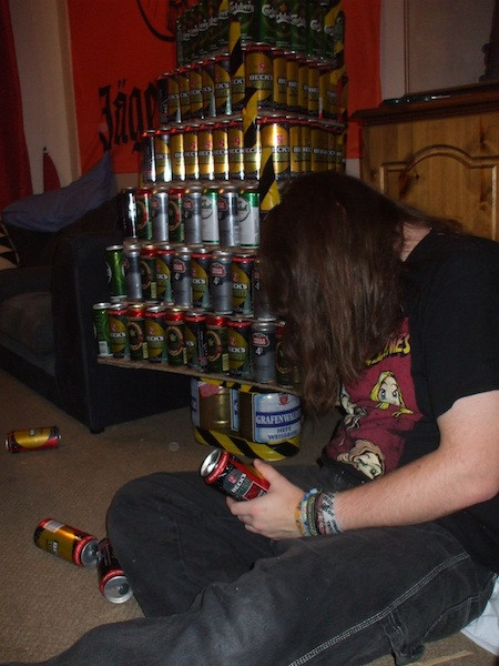Bob, you should drink more Grolsch! It’s applaudible that there are some cans in that tree already, but obviously there should be more! If you’re having trouble getting it all down, which you seem to have from the last pic, I suggest having the NCS-DMB Bass Drop Deluxe burger to guide it down into the stomach!
