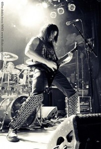 Ken Sorceron’s god-forsaken howl was on fine form throughout, snarling his demonic philosophies with compelling clarity and mesmerising force, and the subtle keyboard embellishments which permeated the songs worked perfectly to add complex textures and an otherworldly vibe to the proceedings. Older material off In The Shadow Of A Thousand Sons was different, but not totally removed, from their newer works, showcasing more overt layers of melody and technicality. Songs such as “The World Beyond” and “Floods” balanced speed and power with cold, cruel melody and a ferocious, barbaric guitar tone, ably supported by prominent keyboard breaks which served to accent the devilish tightness of the band as a whole.