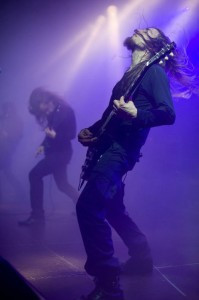 Openers Iskald played a short, tight set, delving into material from all three of their albums.”Under The Black Moon” off their latest (phenomenal) album was a sumptuous delight of crunchy guitars and awkward, obscure rhythms, while “A Breath Of Apocalypse” pummelled and grooved with a refreshing directness and power. Throughout their set, thrash-style speeds and an at-times death metal aesthetic wrapped around soaring, crystal clear melodies, intelligent, driving drums and rough, propulsive Immortal/Enslaved-style riffage.