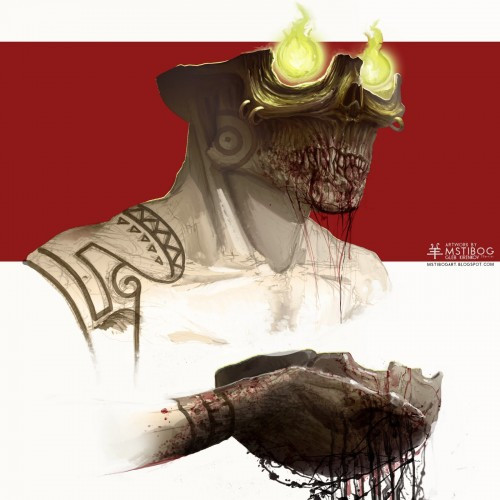 It Is metal. I mean like… the best modern metal is an almalgamation of the greatest aspects of previous genres. Thats what this dudes artwork feels like; older barabarian themes mixed with an anime/comic asthetic and the best of western/european designs. This motherfucker needs to get more contracts for album art. The number of the blog dudes had a recent thread lamenting the tacky artork of thr latest ASP record and the “same-ness” of most modern metal album covers in general. This looks like the cure for what ails ’em.