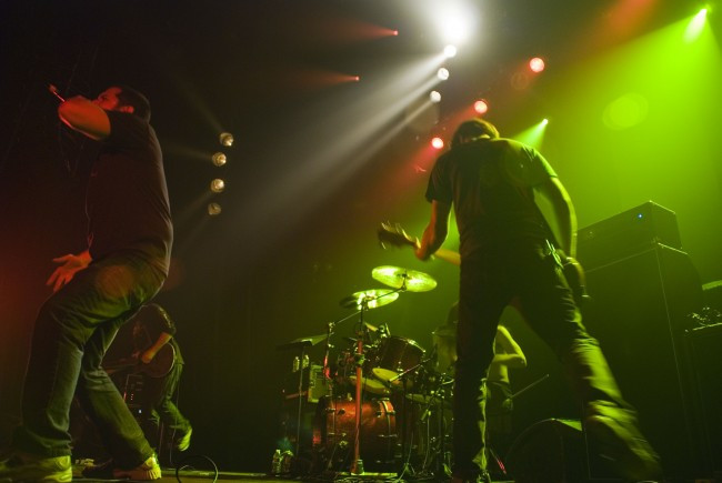 Rosetta played next, with a more mellow set. A few years ago people called Rosetta’s looping and hypnotic brand of sludge “thinking-man’s metal,” but “contemplative” suits it better. This style of Isis-like post-metal has fallen by the wayside thanks to post-black-metal’s recent upswell of popularity, but that hasn’t stopped Rosetta from having an active couple of years: they just released a split with Junius, after a new album and another split last year. No wonder, then, that Rosetta were visibly excited by their own music, though it was low-key compared to the remainder of the evening.