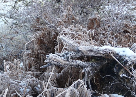 The dusty wind blew across the frosted landscape with a ragged rasp. A clump of dust rolled by clumsily, slightly bouncing up and down as it traversed the bumpy forest floor (What the heck is dust doing in a frosty forest?!). Birds chirped their last call for their nest mates as the day drew to a close, with the sun turning a red-orange hue as it slowly descended beneath the horizon, disappearing into the ravenous maw of the icy cold night.