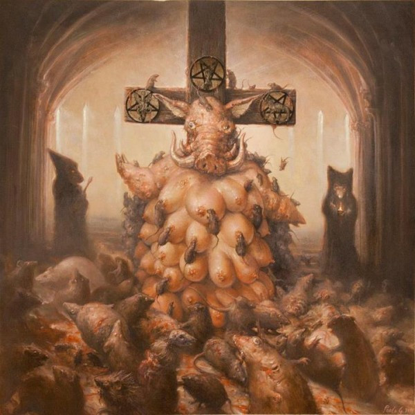 This is the cover for a 12″ MLP called Black Mass Into The Church Of Rats by an Italian band named In League With Satan. I don’t know which album this next artwork is for, but I really like it.