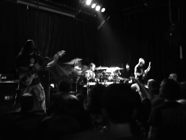 Had to leave before Six Feet Under played, to make my ferry boat home. Goddamned early day tomorrow, cuz of the fucking day job. Made the ferry boat with 2 minutes to spare. Banging out this post over the water. Got off the ferry and drove home. Downloaded the pics. Too tired to be selective. Too tired to edit them. Wish I had some photo training. Anyway, so almost all the photos — put ’em in the post.