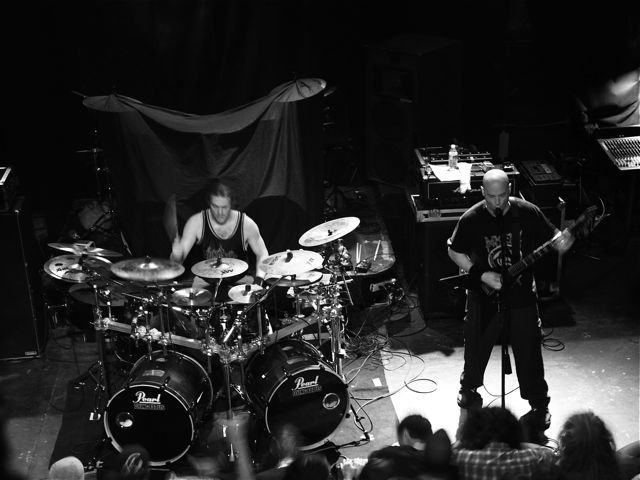 Took a few pics from the balcony and headed for the floor. Muscled my way up front, one layer of metalheads between me and the stage. Pit was non-stop, and violent. Something about the Fetus music stimulates the reptile brain. Trey Williams is a human drum cyborg. All three of them, machine-like, vacuum tight, locked-in like lasers. They don’t move much, no pandering to the worshippers, so focused. Music is like sticks of dynamite thrown into the crowd. Bodies flying, necks snapping, utter mayhem.