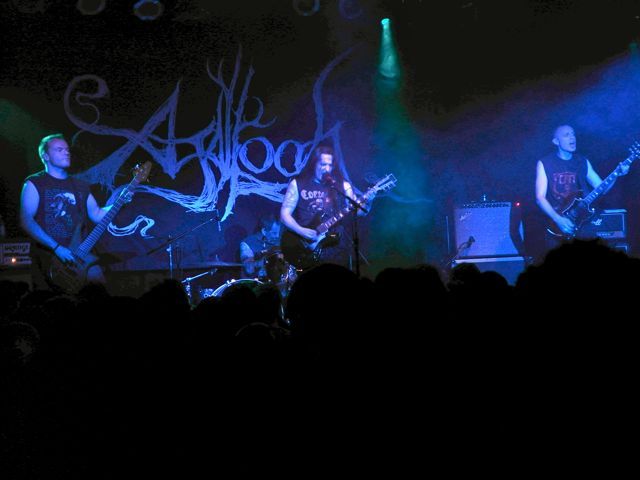 They played at The Crocodile, a venue that was a fixture of the Seattle music scene (Nirvana played their first live show there, for example) for 16 years before it closed in 2007. It reopened under new ownership in 2009 after extensive remodeling, but this was the first time I’d been there (they don’t book many metal shows). Nice place — a big open floor with a full bar in the back and a small balcony area to the right. By the time Agalloch started (well after 11 p.m., unfortunately), the floor was jammed with people all the way from the front of the stage back to the bar.