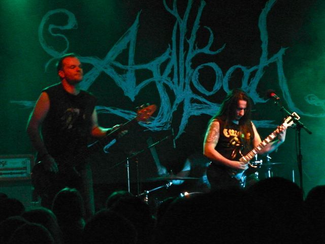Preceding Agalloch was another Portland band named Eight Bells (who aren’t part of the full NorthAm tour) and then Taurus (a two-woman band, also from Portland, that includes the afore-mentioned Stevie Floyd from Dark Castle). I enjoyed Eight Bells’ post-rock instrumentals, but the tag-team vocals of Melynda Jackson and Haley Weiner were too often off-key, and I confess that I gave up after the first three songs and went outside and spent the rest of their set catching up with Ryan Yancey and James Furrow from Blood and Thunder, a hard-working, hard-playing band we’re big fans of, who are forging ahead despite a couple of recent line-up changes. They’ll be opening for Korpiklaani, Moonsorrow, Tyr, and Metsatoll in Seattle on September 8, and I’m tremendously stoked for that show.
