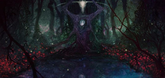 The music is go-slow, down-tuned, groaning, tarry blackness. Ringing guitars spin arcs of light up through the murk and ghoulish vocals shriek acidically and roar cavernously. Periodically, the pace kicks up in a wash of tremolo’d guitar and blasting drums. It’s a cool combo of funereal, sludgy death/doom, black metal clawing, and shimmering guitar melody — definitely worth hearing: