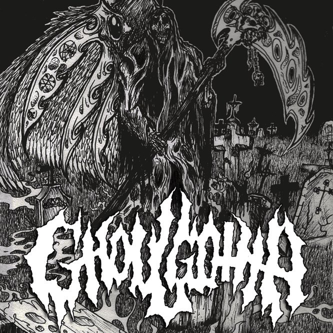 Ghoulgotha are a new band formed by vocalist/guitarist W. Sarantopoulos, a/k/a “Elektrokutioner” (Decrepitaph, Father Befouled, Encoffination, Wooden Stake, Festered, Scaremaker) after he relocated to San Diego. I found out about Ghoulgotha while trying to dig up current info about the latest vinyl release by Encoffination, since this new band will become Elektrokutioner’s main focus, given his move to Southern California.