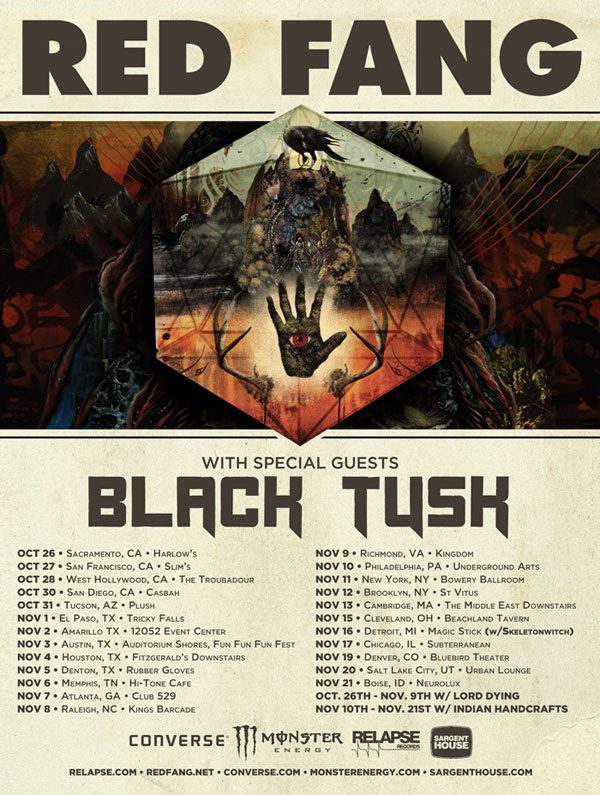 Red Fang’s North American headlining tour with Black Tusk, Indian Handcrafts, and Lord Dying kicks off this Friday in Sacramento, CA, and if you take a close look at the flyer up above, you can peep the rest of the schedule. Should be a quality show.