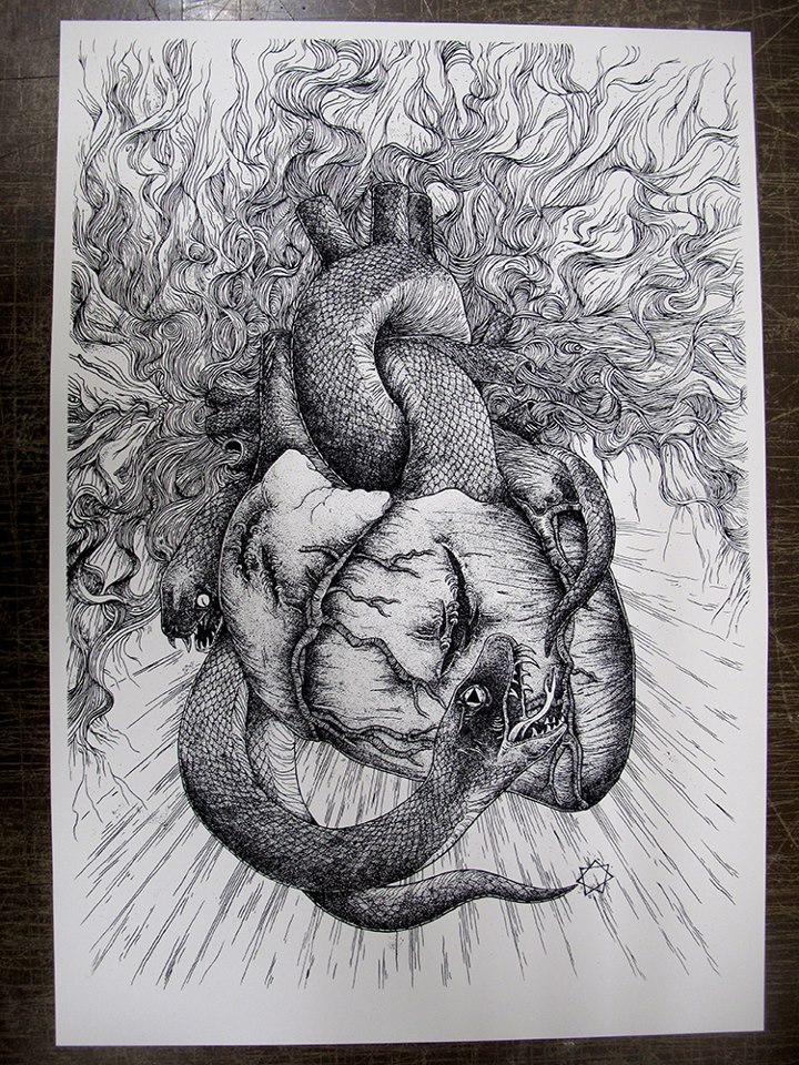 The artwork for the LP was created by Alexander L. Brown, and apparently will include a Parasignosis poster that looks stunning (not sure if this will be sold with the LP or separately). A detail from the poster is up above. A photo of the whole thing is just after the jump, and more detail shots can be seen here. This is really great work.