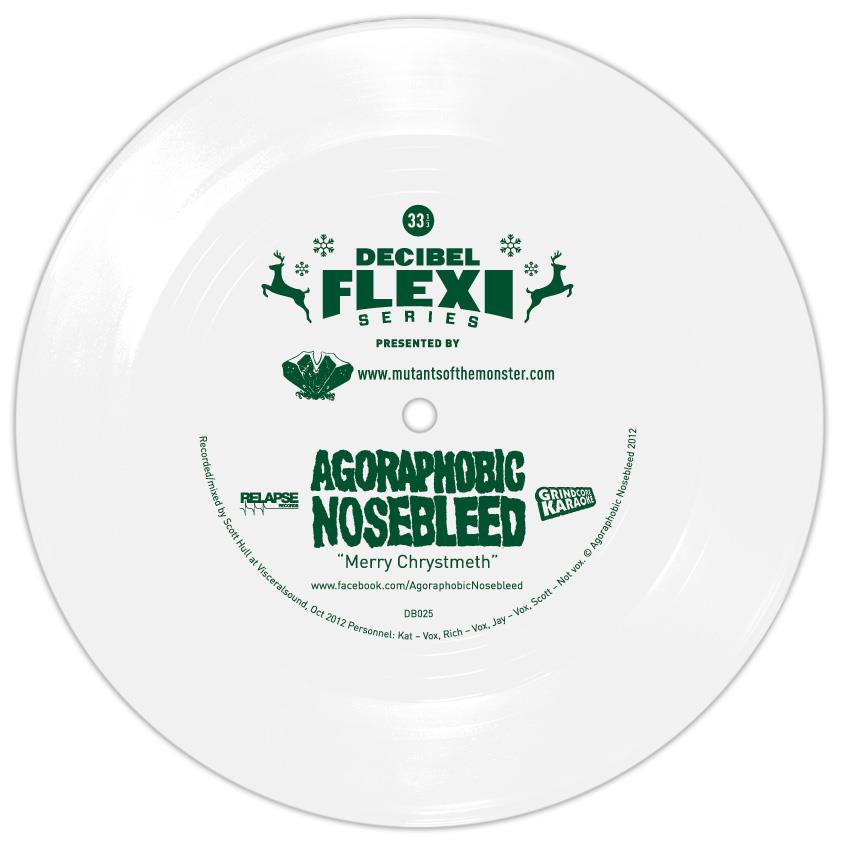 While there’s no new Agoraphobic Nosebleed album imminent, ANB have recorded a “holiday EP” that will be included as a Flexi-Disc in the January 2013 issue of DECIBEL magazine. And as you can see from the image above, the band are helping us get in the holiday spirit by titling their release Merry Chrystmeth. Sounds like it will be the kind of sing-along carol you can enjoy with the whole family, with egg nog and candy canes and reindeer (carcasses) for everyone!