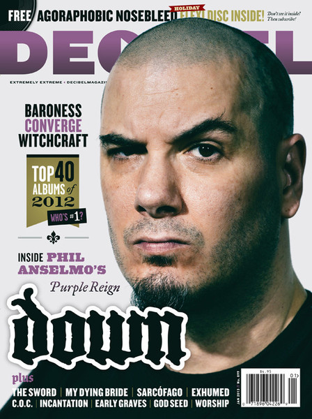 Well, here we are, the day before Thanksgiving, and year-end listmania is already upon us. Shit, most people don’t even turn on Christmas lights and start playing carols until the day after Thanksgiving. But DECIBEL magazine has broken the ice. Their January 2013 issue is in the mail, with Phil Anselmo’s baleful stare gracing the cover, and inside is the magazine’s list of the Top 40 Albums of 2012.