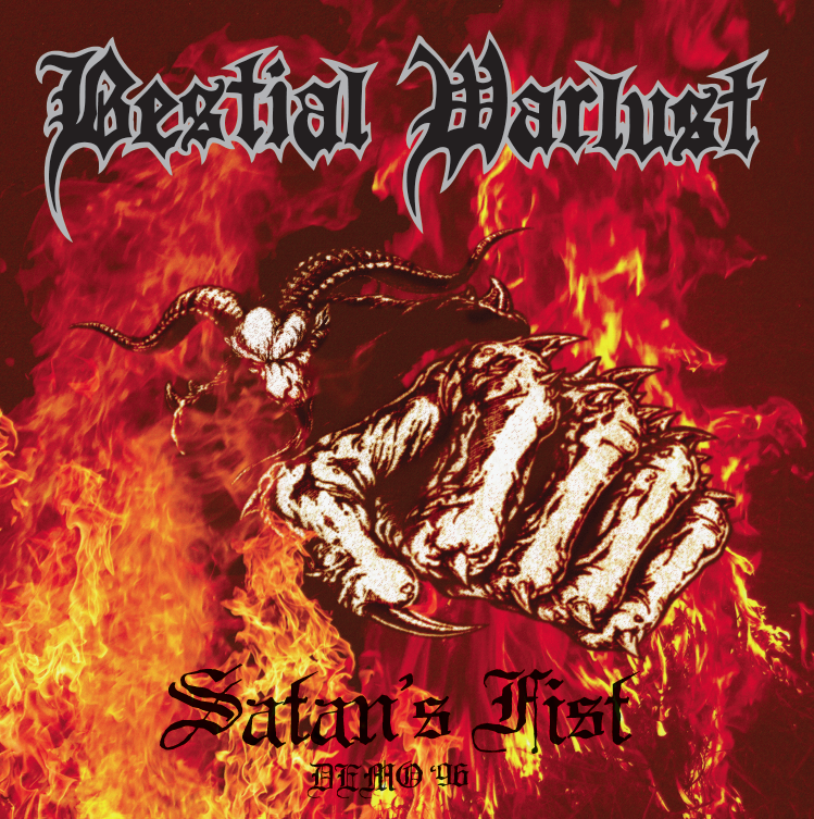 The second demo was a three-song release entitled Satan’s Fist. Before it was recorded, guitarist K.K. Warslut had moved on to Destroyer666 and vocalist Damon Bloodstorm (now with Cemetery Urn) had left to join Abominator, leaving two of the band’s members to record Satan’s Fist: drummer Marcus Hellcunt (now with Vomitor) and guitarist/vocalist Skullfucker.