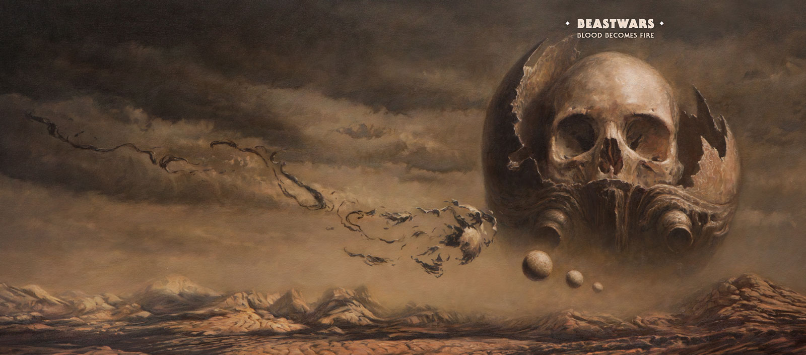 And finally, a word about the Blood Becomes Fire album art. It’s another creation of the stupendous Nick Keller, whose phenomenal work graced the first Beastwars album. The new pieces, in all their gatefold glory, both outside and inside, are below. You can see higher-res versions of them at this page, where the album is also available for pre-order on CD, vinyl, and digital.