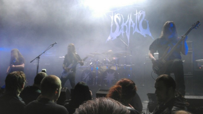 Up next was the icy, melodic black-thrash of Iskald, one of only two bands playing tonight whom I’d actually seen before. Undaunted by the large stage and booming amphitheatre before them, Iskald put on a hell of a show, technically stunning and extremely atmospheric. Scathing vocals, shape-shifting fretwork, and complex, proggy song structures defined the band’s chilling, melodic sound, swept along by blizzards of blast-beats and breakneck staccato shifts in tempo and tone.