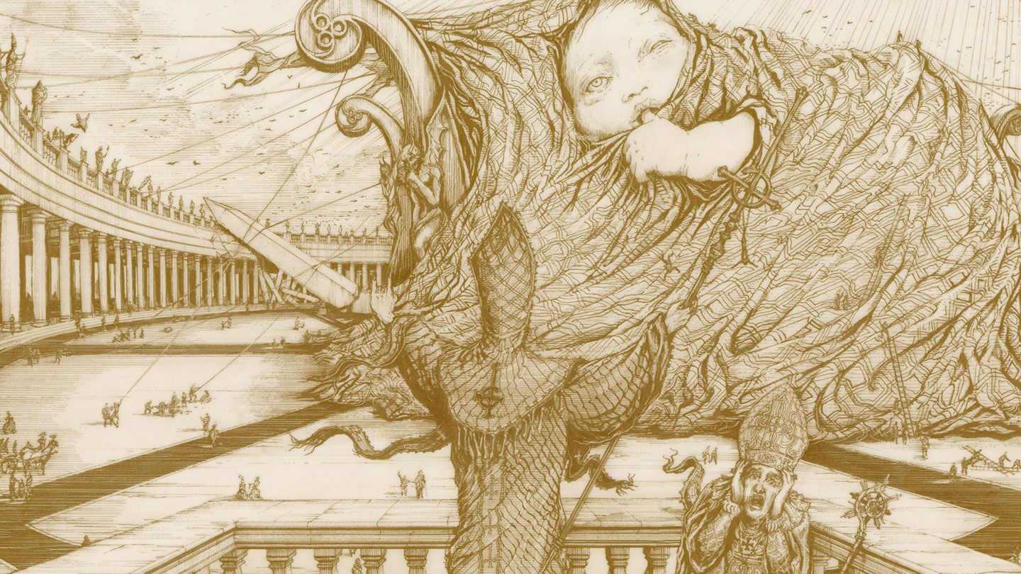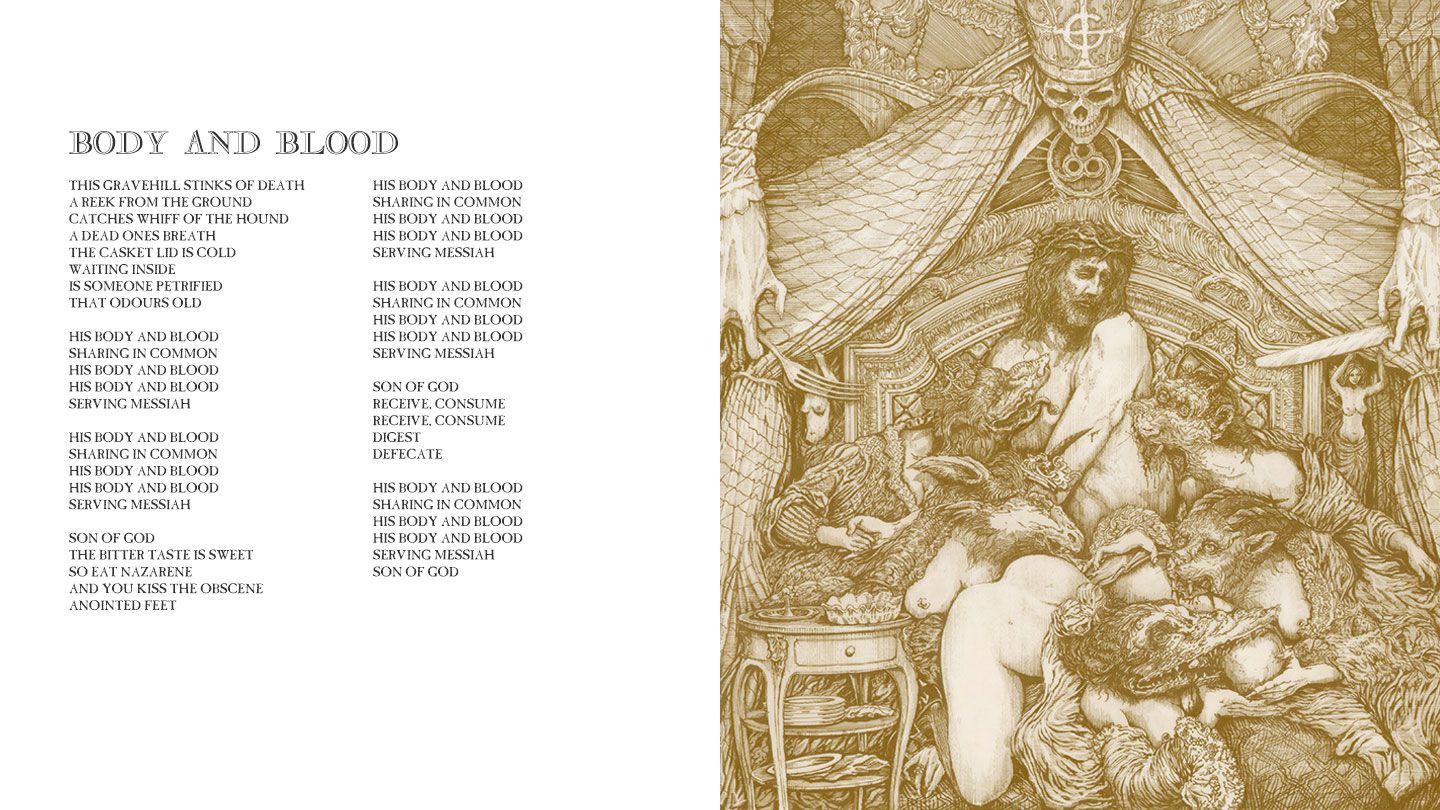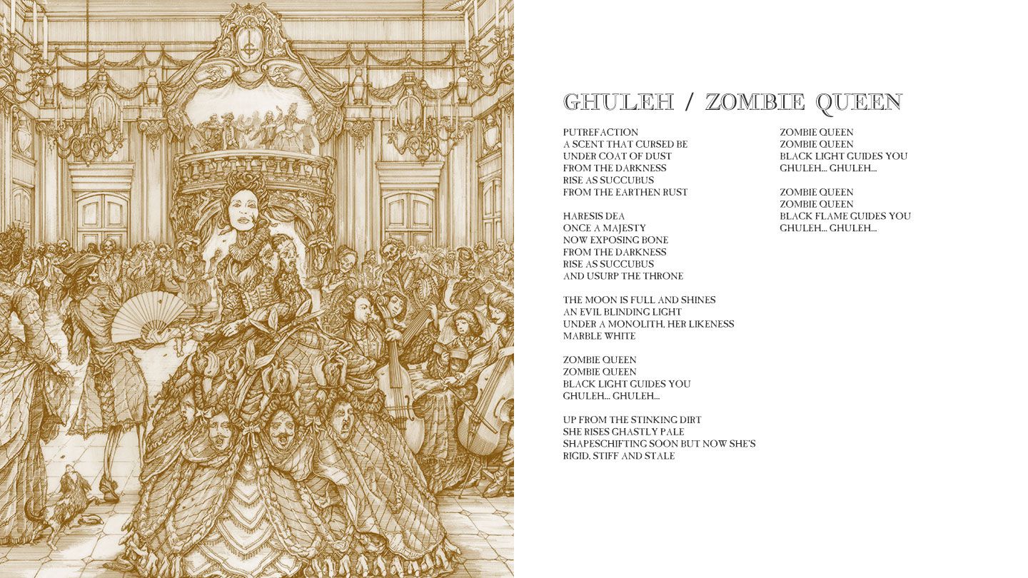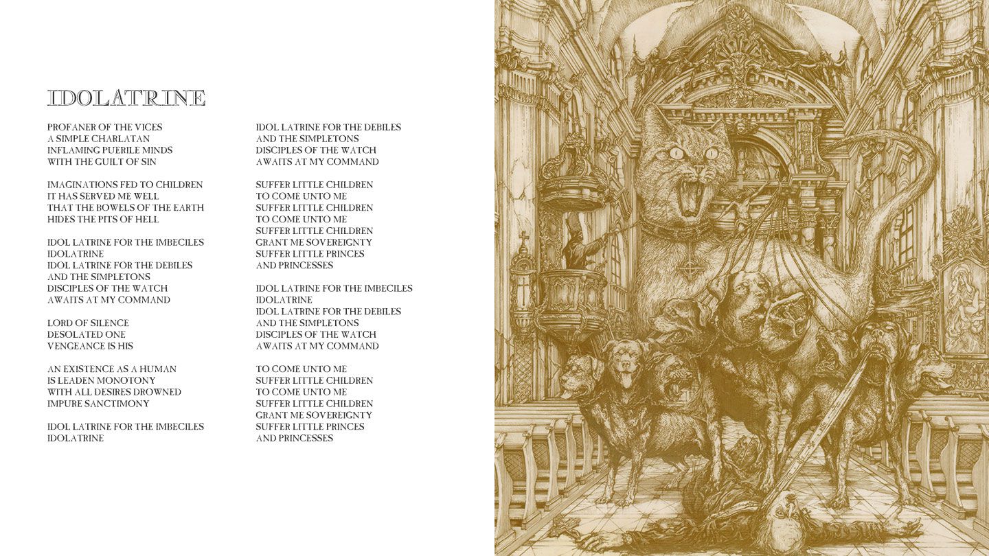 Infestissimum can be ordered from the band here, and it’s available everywhere else in creation, too. You can stream the entire album via the YouTube player below — it should move from song to song automatically (showing the art created for each song). If not, go HERE to listen to them individually. And speaking of the art created for each song (by Zbigniew Bielak II), the drawings are fantastic, and many of them are below, with lyrics.
