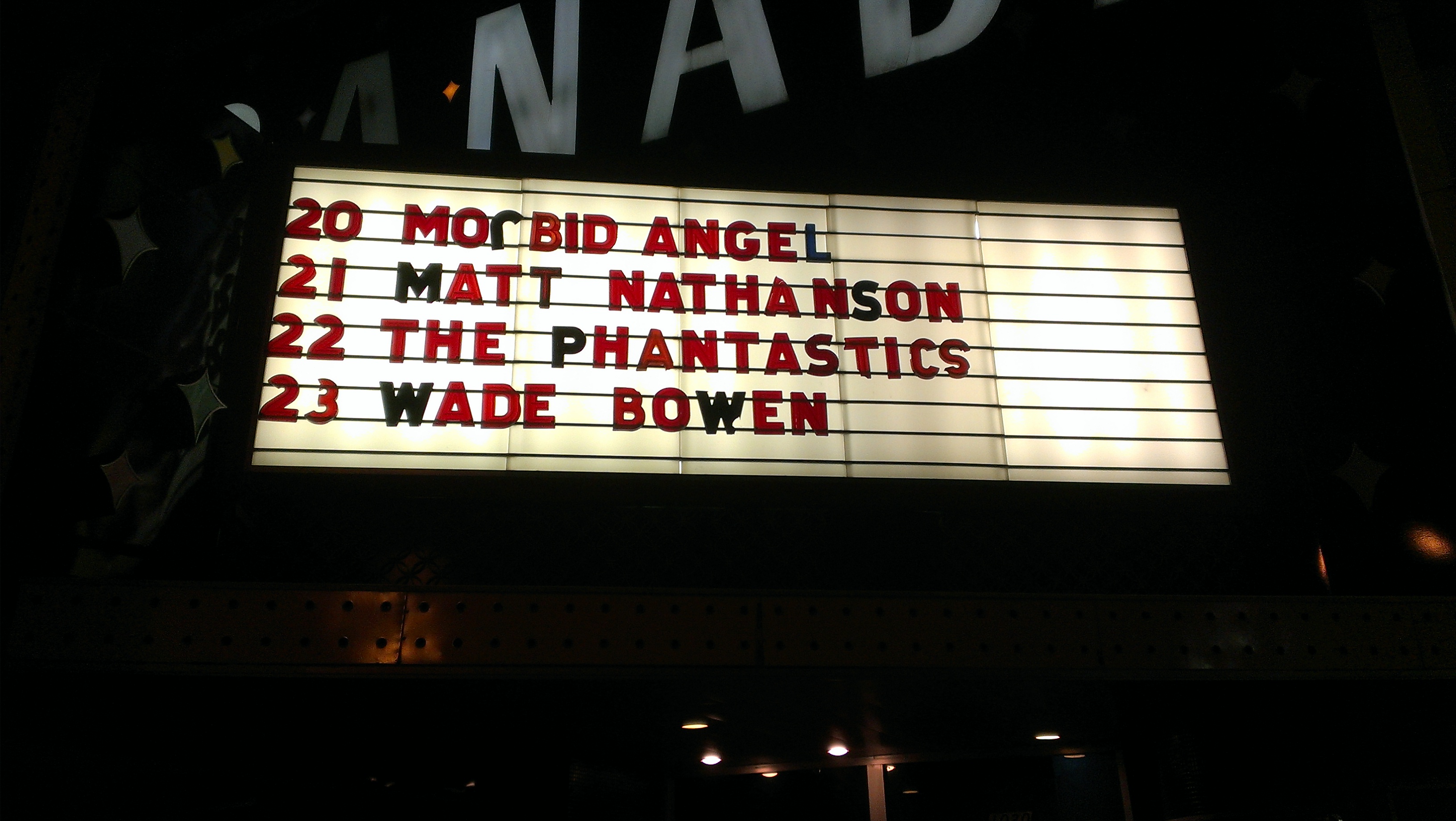 The Granada Theater began its life as a vaudeville theater in 1928. In the 1930s it was transformed into a movie theater and I vividly remember my parents taking me there to see the original Star Wars in the spring of 1977. It was eventually run out of business by the arrival of the multiplex and in 1993 began a new life cycle as a comedy/music club. The large room is exceptionally suited to live performances and The Granada has become the premiere music venue in Lawrence, Kansas, for touring metal acts.