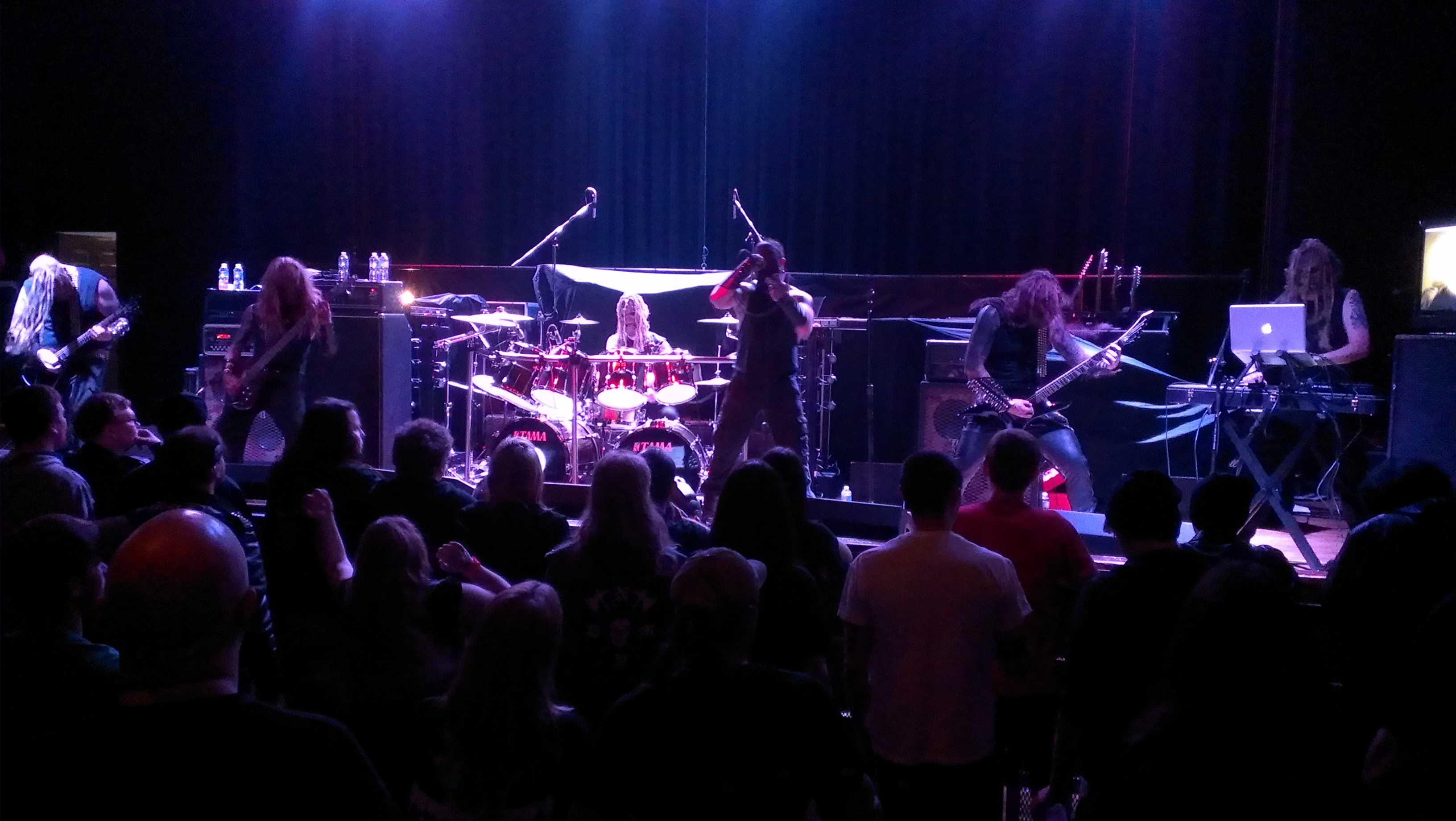 It would seem a monumental task to divert attention away from a performer as powerful as Vincent, but guitarist Trey Azagthoth was more than capable of doing so. Hunched over his guitar, his face hidden behind a mask of black hair, Azagthoth delivered a barrage of stunning leads during the band’s nearly two-hour set. I spotted a small army of cell phones concentrated on his solo fretwork, but he seemed oblivious to anything other than the guitar in his hands. At the end of the night, as the band exited the stage, he lifted his mane to reveal a boyish grin and gave a quick thumbs-up to the ecstatic front row.