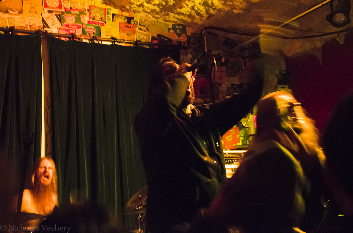 Lingering between their vicious outbursts are morose building passages that fill out the space of most tracks beautifully. I was especially excited to witness the hateful assault of my favorite track “This Cursed Blood”, and it met my high expectations, especially since it came right after the set’s opener, “Eulerian Path”, which was great except for the fact that the vocals were hard to hear due to the sound of people running sound that night fucking up. By the time they got set to play “This Cursed Blood”, Zac had to grab the other microphone that had been set up for bassist Josh Mumford to do backing vocals, so there seemed to be an extra pissed-off intensity when he could be heard for the first time belting out the venomous words of “This Cursed Blood”.Unfortunately, this meant that Josh’s growled vocals went unheard on the many tracks in which he has a vocal role.