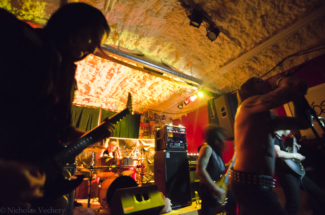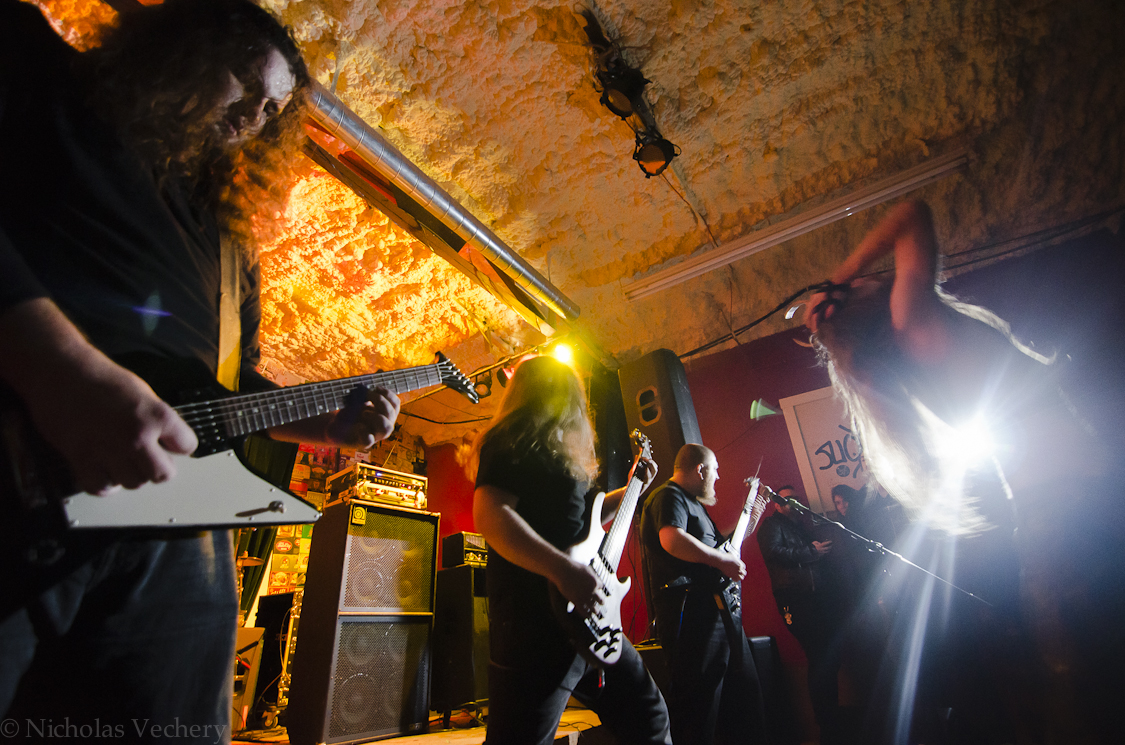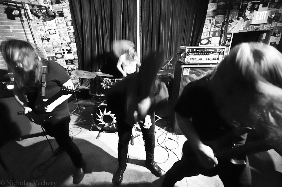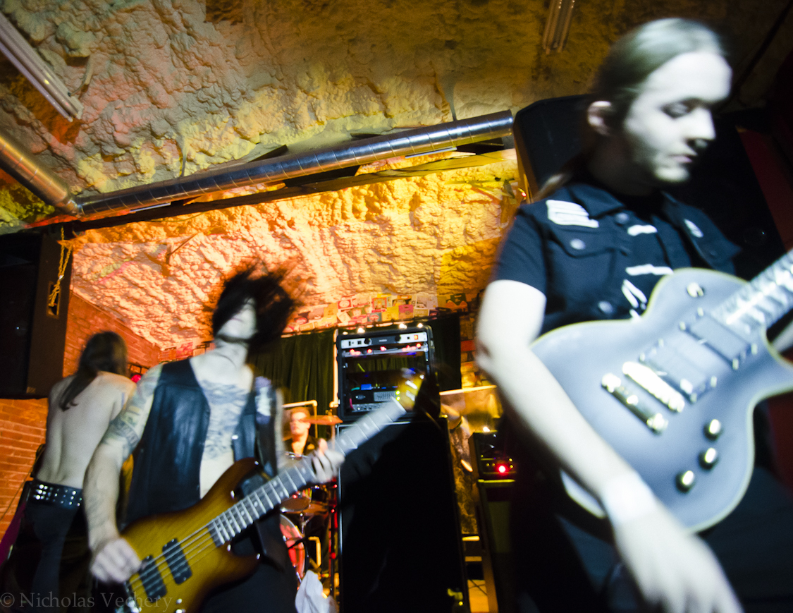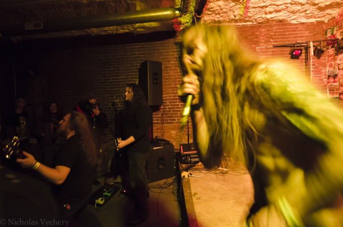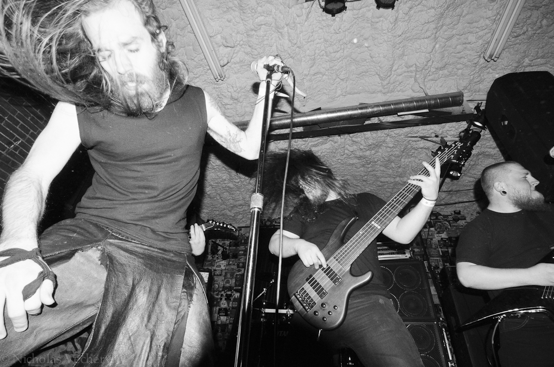 It was an amazing experience to hear the opening track and my favorite of their songs, “An Endless Dusk”, performed with harrowing precision, and the other tracks proved equally enjoyable, including the epic ghostly closer of “I Do Not Belong In This World”. Not even a transformer blowing part-way through their set could stop them from raging, as they promptly came back from power outage oblivion just as livid as before. They sounded shockingly tight, which was something of a surprise, given that they haven’t been around long as a group and haven’t yet played many shows. As I found out, they had new members playing as well. Although they sounded very close to how they sound on the recording, the low-end addition of their bass player gave them a beefier, fuller sound live than on their EP.