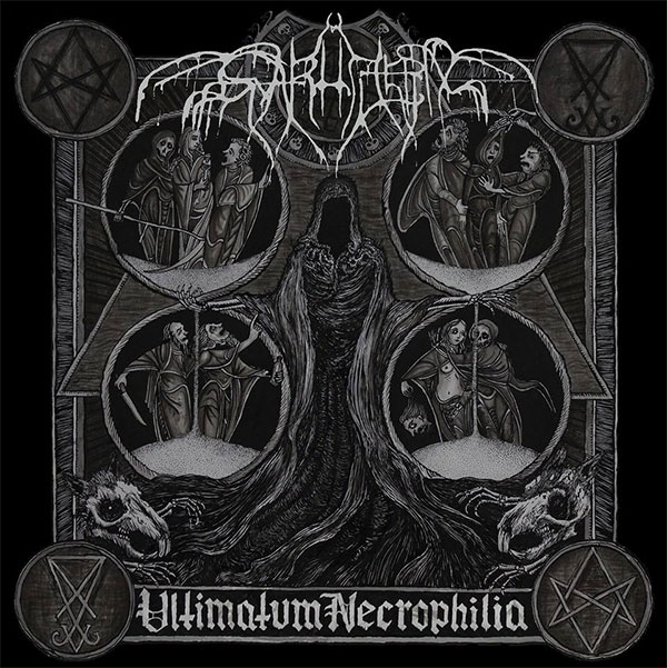 Unlike the first two bands in this round-up, I’ve previously discovered the charms of Norway’s Svarttjern — their last album, 2011’s Towards the Ultimate, was reviewed for us in typically evocative and typically hilarious style by the dearly missed Trollfiend (here). Their new third album is entitled Ultimatum Necrophilia, which sounds like a new video game in which you reach the highest level by ramming the most corpse flesh. It’s projected for release on February 7 via NoiseArt Records.