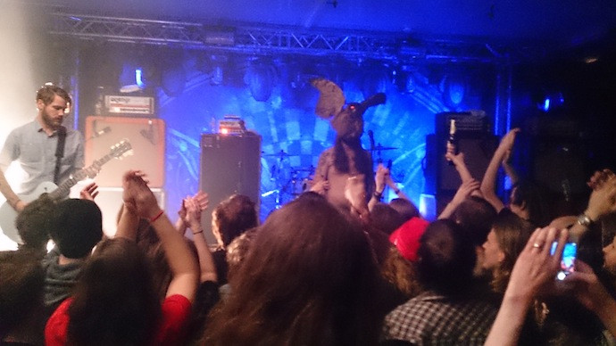 Truth be told, I was never really sold on Kvelertak’s eclectic mix of punk, metal, and Norwegian insanity. But their second album Meir had slowly warmed me over, and besides, given Umeå’s shitty geographical location, you’re pretty much required to attend whenever a foreign band shows up or have your metal license revoked.