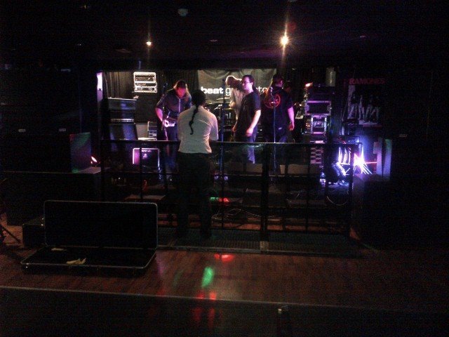 The venue itself was, however, pretty awesome, with a big stage, a great sound system, and a massive (albeit very dark) backstage area for all the bands to hang out in together. The only slight problem was that it was up about 6 million stairs, which meant loading in our gear – of which there was a hell of a lot – quickly became a test of will and endurance.