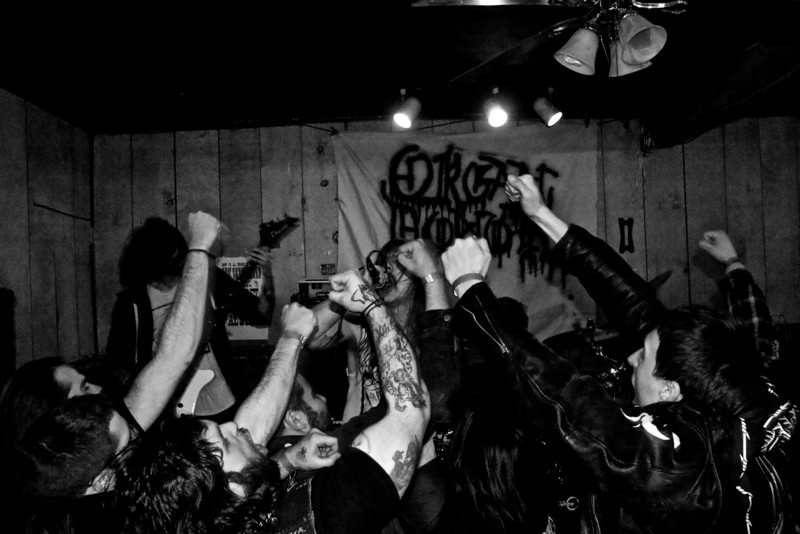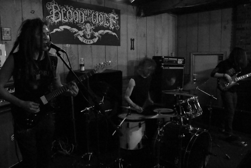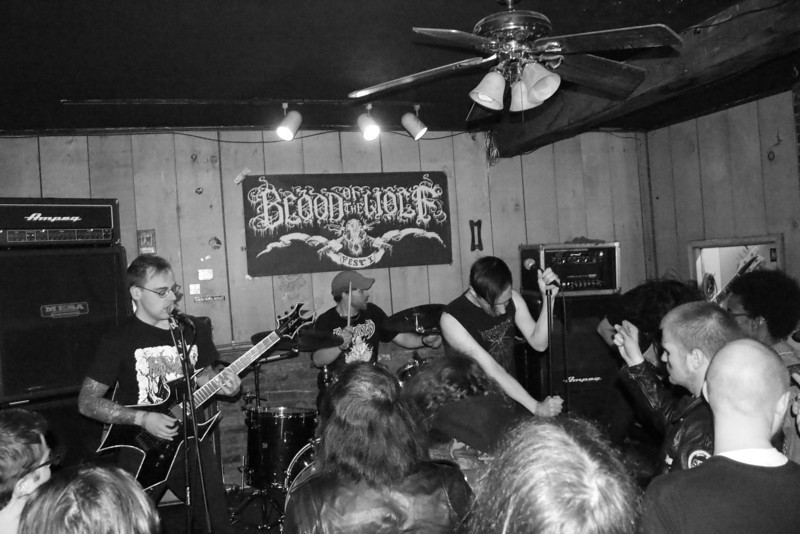This festival was the brainchild of those Kentuckian warriors of chaos, Tombstalker. Primarily organized by vocalist/guitarist Anton Escobar and bassist Chuck McIntyre, the lineup featured several bands from a group known as the Wolven Brotherhood. The Brotherhood was founded several years ago by Tombstalker and Dawn of Wolves (now Valdrin), when they released their split Cemetery Wolven Ritual (are you sensing a theme here?). The Brotherhood has now expanded to include many other bands from across the country. Presumably their collective subject material has also expanded to cover things that are not wolves, although I hold out hope that I will have a place there once my one-man black metal band, Death to the Three Little Pigs, gets off the ground.