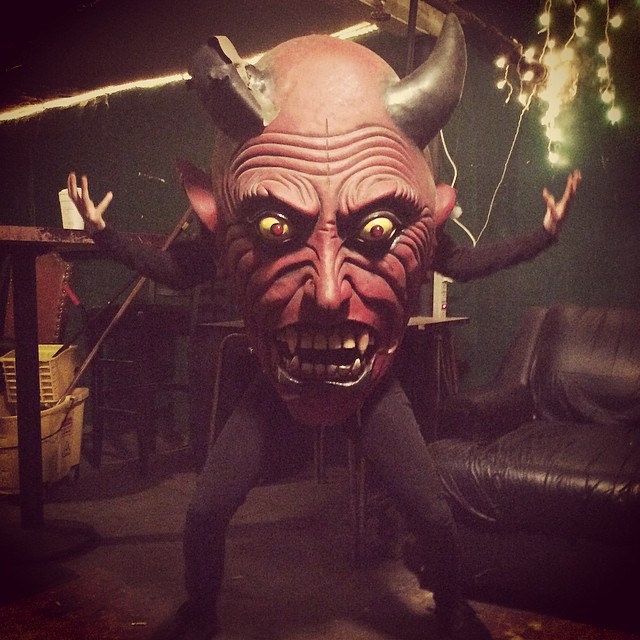 My NCS comrade Austin Weber sent me the photo you see above. Hiding behind that absurdly large, absurdly metal mask is Mel Mongeon of Canada’s Fuck the Facts, putting on her metal face for a show in Chicago last night.