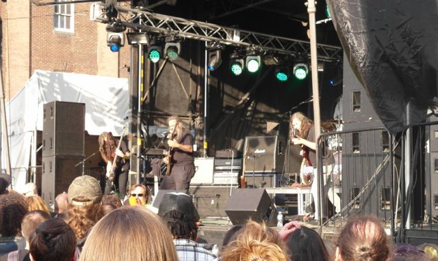 On Friday afternoon, not long after Sólstafir played, I wandered by yet another stand that was serving barbecue and spotted guitarist/vocalist Addi Tryggvason and bassist Svabbi Austmann standing nearby wolfing down some wings. I waited politely until they finished and then introduced myself to Tryggvason. He was very friendly, said nice things about our humble site, and seemed to be having a fuckin’ blast. I did not have my camera that day.