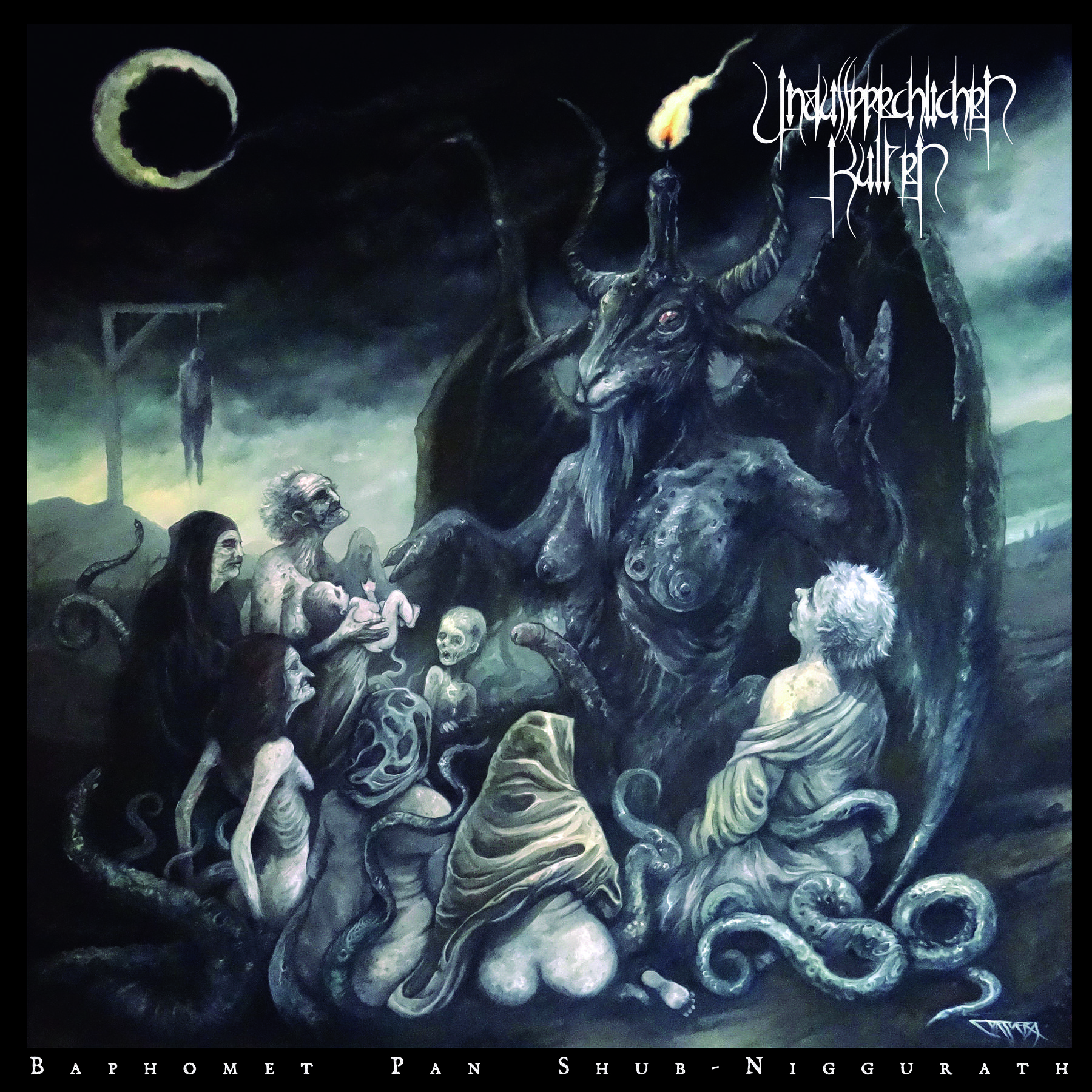 Unaussprechlichen Kulten (“unspeakable cults” according to Google Translate) are a Chilean band whose third album, Baphomet Pan Shub-Niggurath, is due for release by Iron Bonehead on July 14. It’s one of many albums I’ve been meaning to hear all the way through, but all I’ve managed so far is one song named “Spirals of Acrid Smoke”, which is available on SoundCloud. The music is a trampling onslaught of fast-moving riffs, flickering guitar discordance, and tank-like low-end rhythms. It’s massively heavy and punishing, but equally disorienting, and the vocals are gargantuan. If you’re a fan of death metal in the Incantation vein and you’re unfamiliar with this band, you need to dive right on into this abyss.