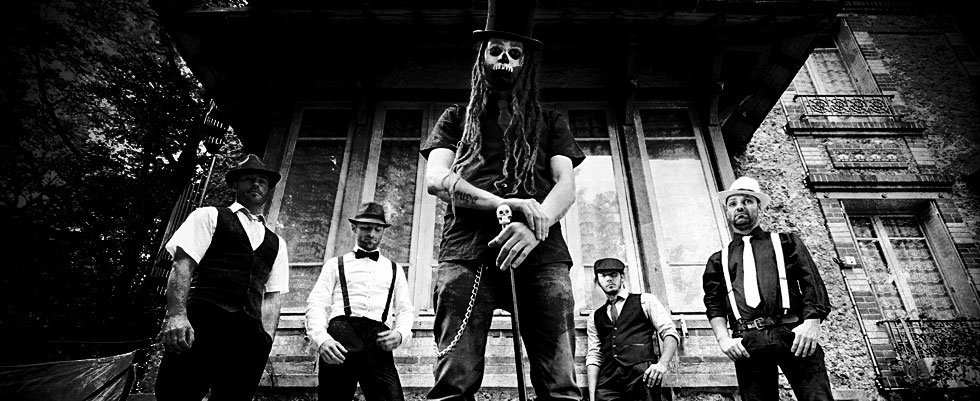 Today Trepalium released a music video for a new single named “Moonshine Limbo” that put a ginormous smile on my face. It comes from a new six-track EP named Voodoo Moonshine that will be released October 6 by Klonosphere. Not only have the band dived head first into swing, they’ve backed it to the hilt with a brass section, which gives the song a big-band sound. It’s got one foot in the 30s and one foot in 2014, and a couple more feet straddling the line between swing and groovy metal, with harsh vox on top of the whole hybridized, multi-legged thing.
