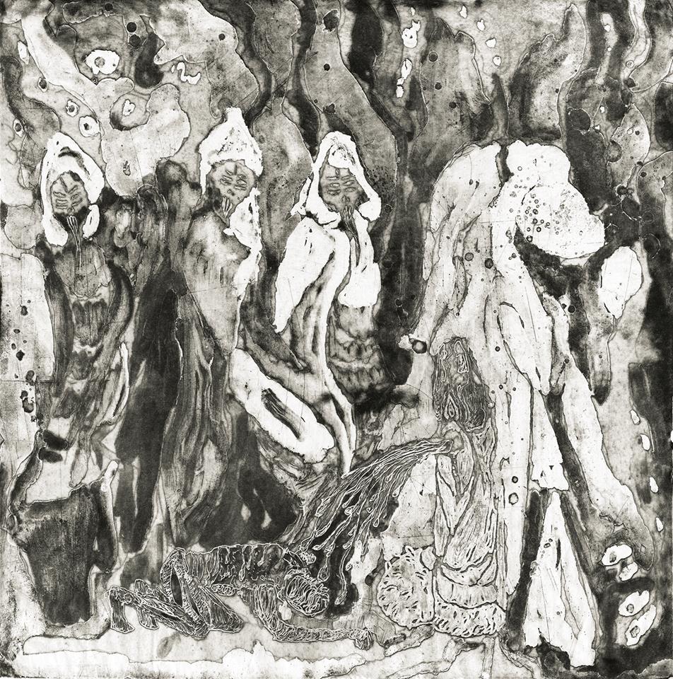 It’s also a change in style from what I remember. “Onward” is titanically heavy and saturated with an ichor of doom. It’s an unmitigated blackened death metal assault of whirring riff ferocity, pavement-splitting bass dominance, and snare-heavy percussion. The eerie lead guitar melody gives it an otherworldly ambience, and the reverberating vocal excretions are thoroughly heartless.