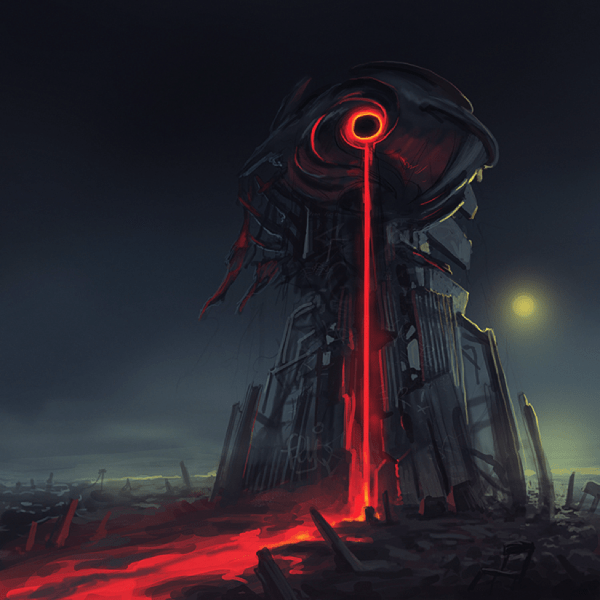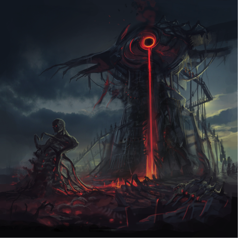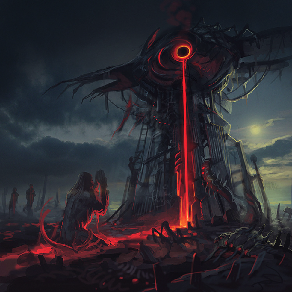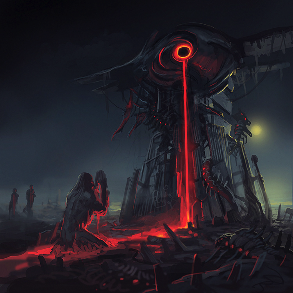 Pär: I think Charles mentioned a monolith as well. My initial idea was that the monolith was built by people as some kind of shrine to the eclipse, built with whatever debris they could find. I wanted to do the blue version, only to avoid the red to be mistaken for blood. In the end I´m happy we went for the red though.
