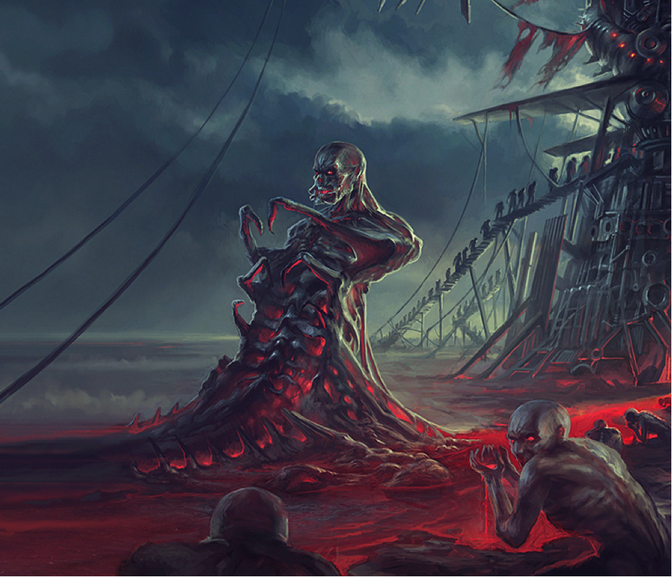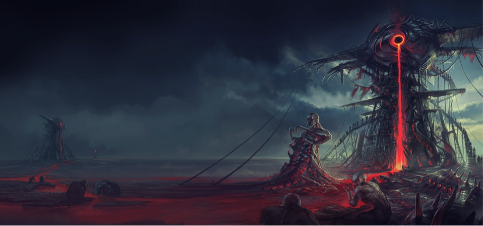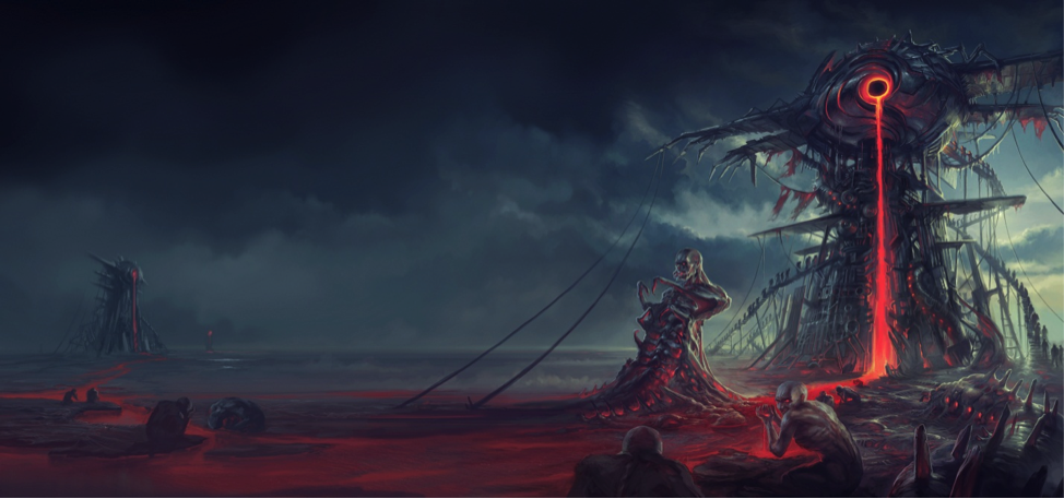Pär: I agree to the above, the scavengers really tied things together, also that one guy looking at us is kind of creepy. Also the red goo has the right color now. My initial fear was that it would look like blood, but the glow made it look like melted metal or lava in the previous image. This color is something different, but even so, some may interpret it as melted metal since the brain always try to make sense of things it has never seen before, so…
