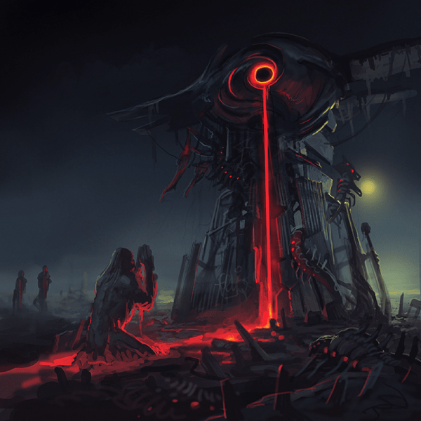Charles: These were the initial ideas Pär came up with. I didn’t have a title or any lyrics at the time so I just hit him up to see if he had any ideas to start. I think the only thing I asked of him was to try and avoid a cityscape and try and do something different with the eclipse. I opted for the red version purely because I always wanted to use our red logo on a cover.