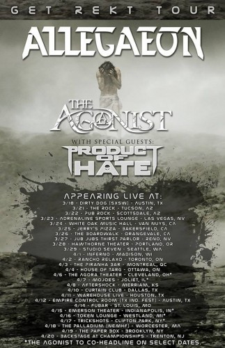 I’ve been following Colorado-based progressive-groove-thrash-death metal band Allegaeon since the beginning, and they’ve only continued to cement their place among the standouts of modern metal history. Having seen them live before, I can attest to their immense power and intensity in a live setting. Definitely a band to check out on stage if you can! Product Of Hate are providing support on the tour, with The Agonist co-headlining on some dates.